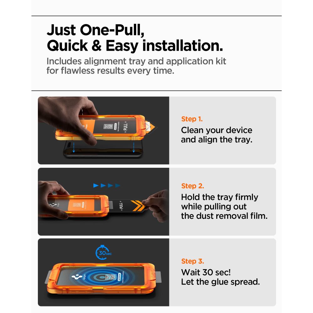 Postavljanje stakla je jednostavno i precizno zahvaljujući priloženom inovativnom kompletu za automatsko pozicioniranje AlignMaster. Sustav uklanja mjehuriće i neusklađenost, osiguravajući savršeno pristajanje od prvog puta. Staklo ne utječe na funkcionalnost dodira i pruža trenutni, responzivni odziv zaslona, održavajući glatko i ugodno korisničko iskustvo.