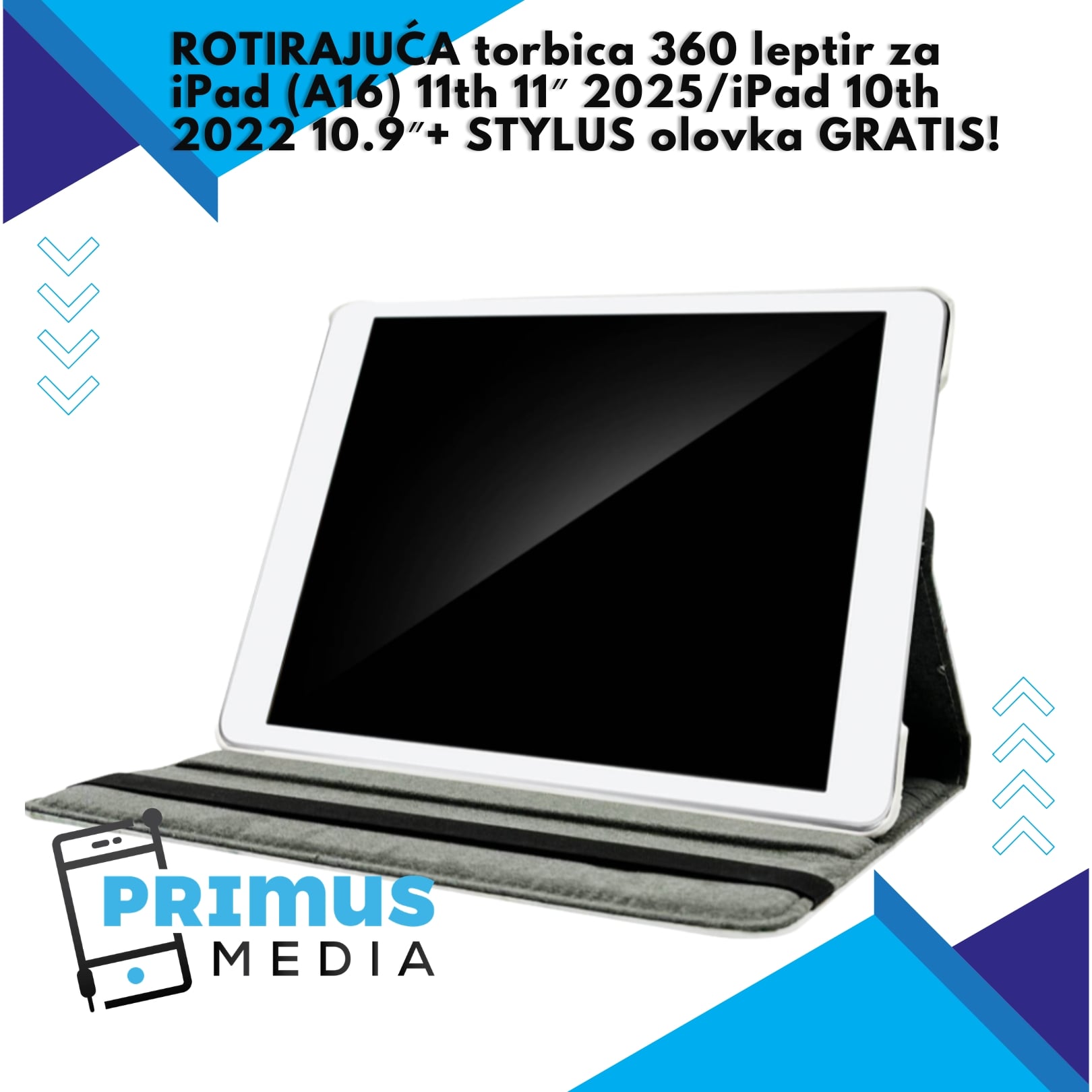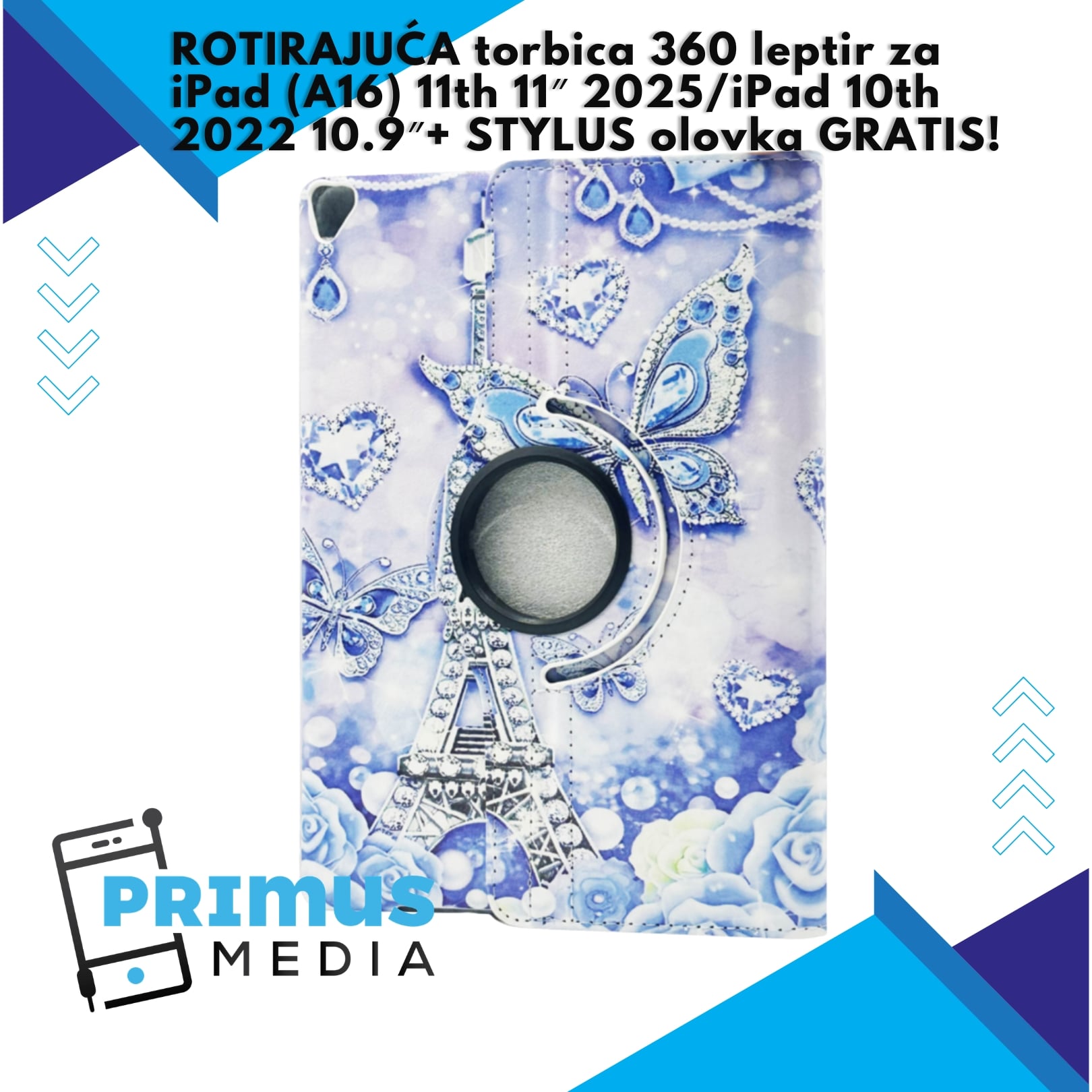 ROTIRAJUĆA torbica 360 leptir za iPad (A16) 11th 11″ 2025/iPad 10th 2022 10.9″+ STYLUS olovka GRATIS!