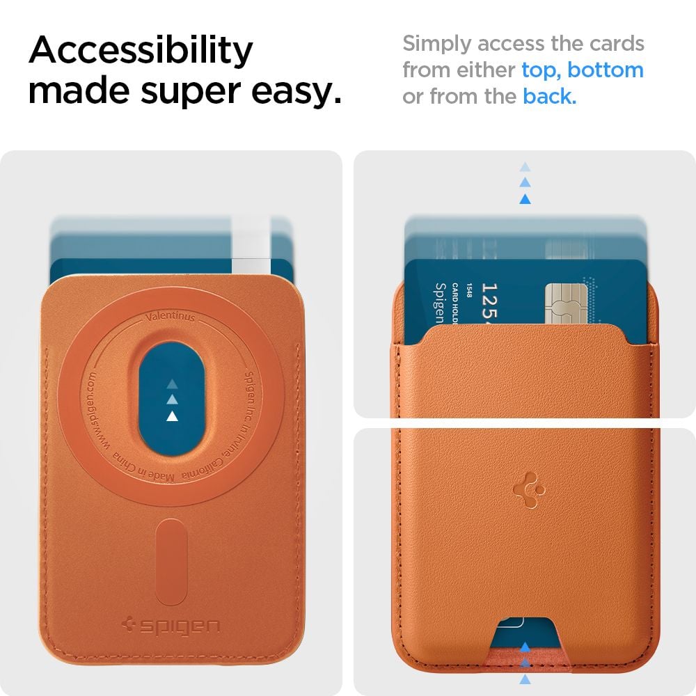 Spigen Valentinus je magnetski novčanik za kartice izrađen od veganske PU kože koji se pričvršćuje na stražnju stranu telefona ili MagSafe futrole jednim pokretom. Tanak i lagan, potpuno eliminira potrebu za tradicionalnim novčanikom – samo uzmite svoje najpotrebnije stvari.