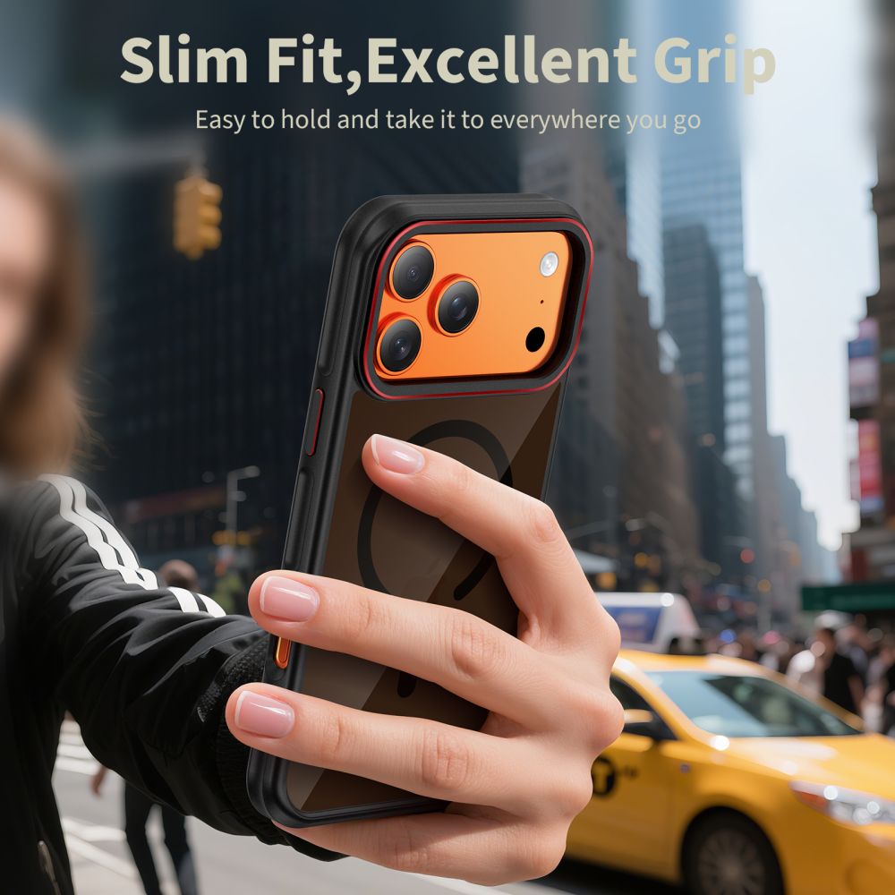 Dodatno, torbica je kompatibilna s MagSafeom, što omogućuje jednostavno i praktično korištenje dodataka. Poklopci gumba osiguravaju punu funkcionalnost i udobnost korištenja, a metalni, uzdignuti okvir objektiva jamči dodatnu zaštitu fotoaparata.